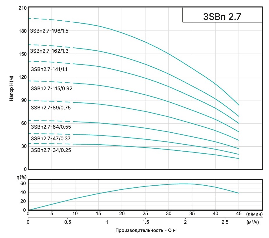 - Диапазон напора - от 20 до 271 м;
