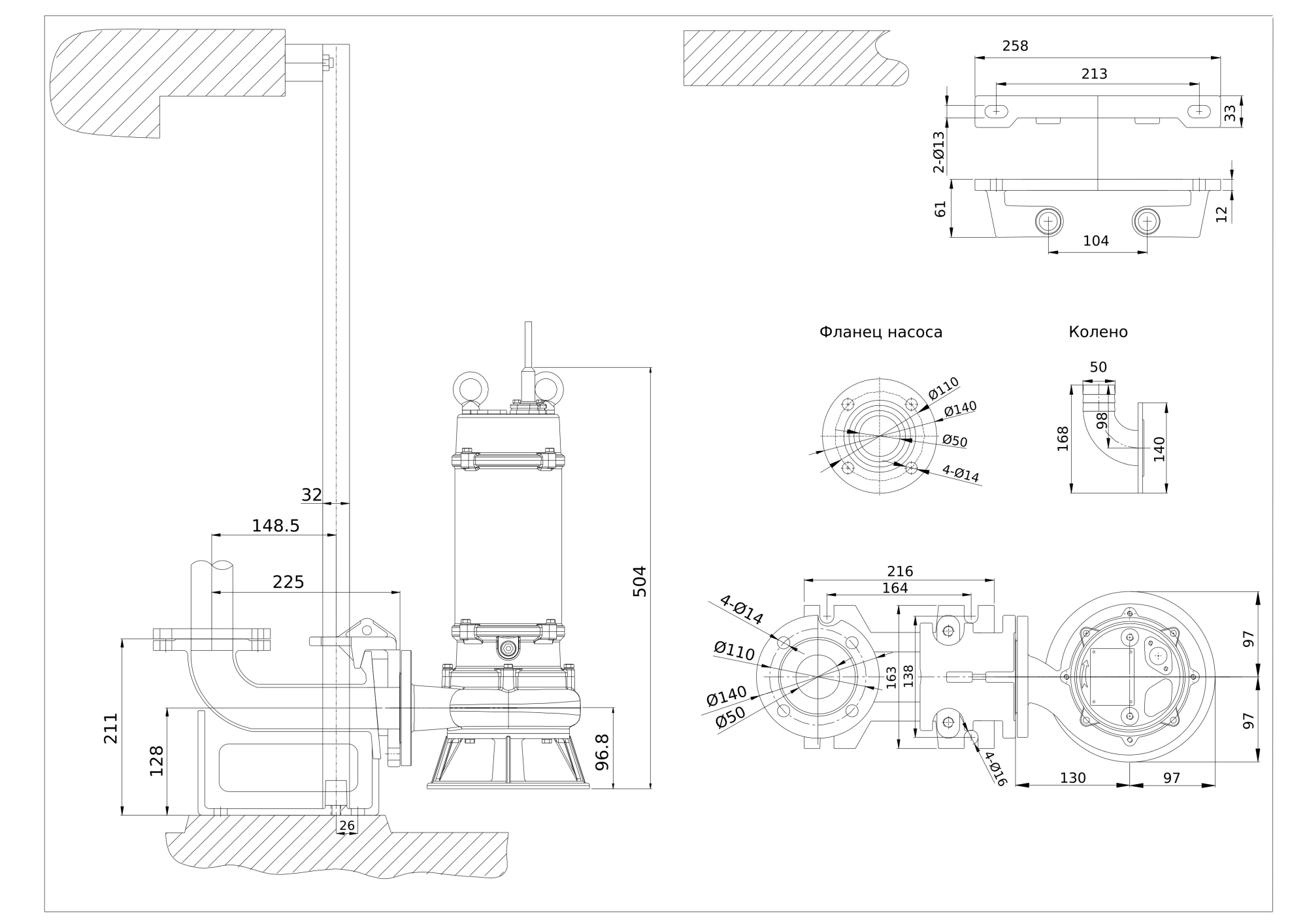 Максимальный размер пропускаемых частиц от 15 до 110 мм (в зависимости от модели насоса).